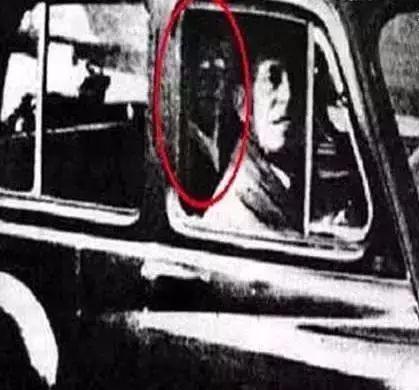 这是1959年时,英国的一位夫妻外出扫墓的时候,太太拍下先生坐在车上等她的照片。而男生的后面有着戴着眼镜的人影,而且当照片洗出来后,太太就说这是她的妈妈。专业人员看这张照片也说并没有看到造假的痕迹~